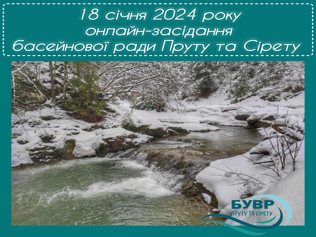 18 січня 2024 року відбулося перше онлайн-засідання Басейнової ради Пруту та Сірету в оновленому складі. Одним із головних питань зустрічі було погодження пропозицій до Плану заходів із захисту від шкідливої дії вод на 2024 рік у суббасейнах Пруту та Сірету на території Івано-Франківської та Чернівецької областей. В.о. начальника БУВР Пруту